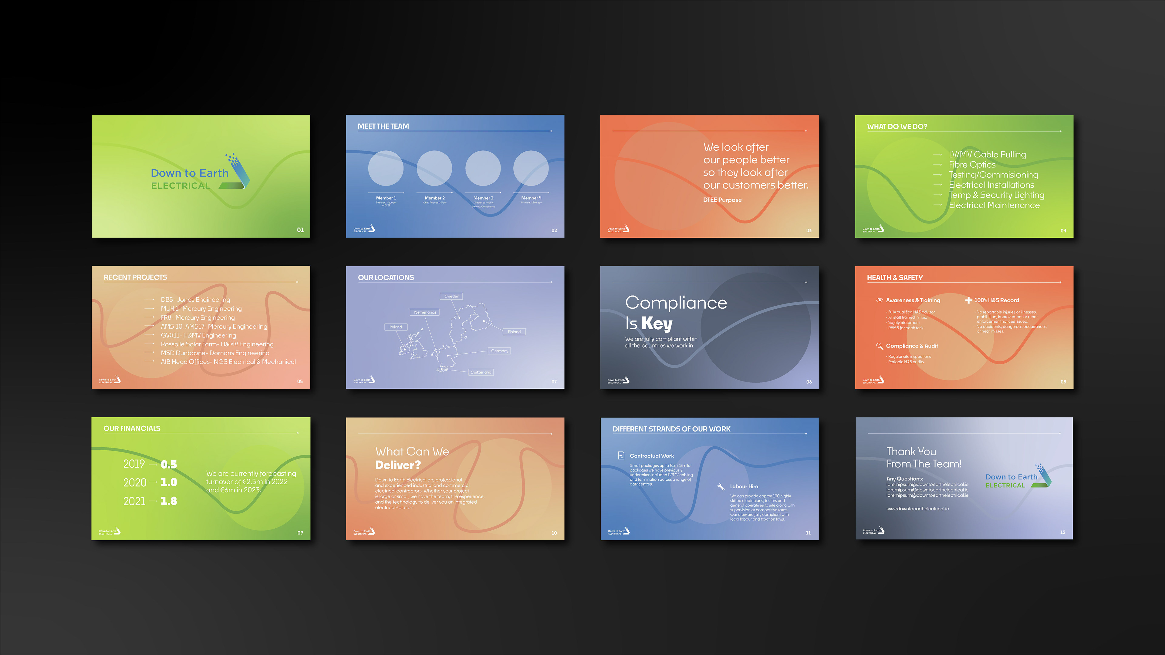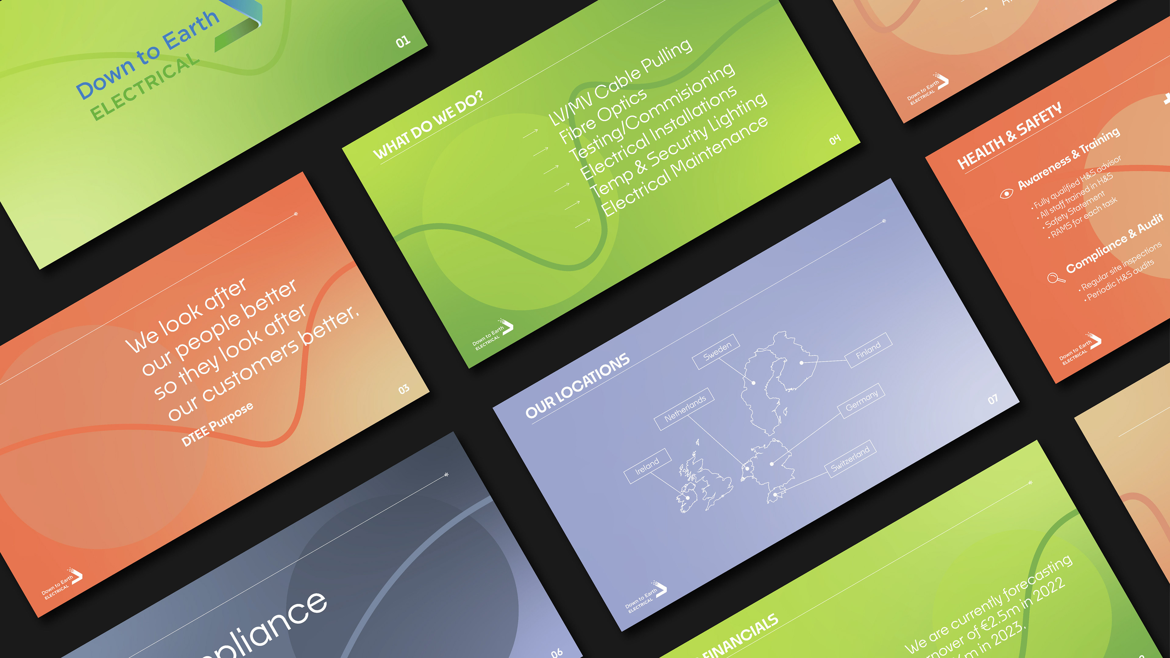 Pitch deck design for Ireland based electrical company, Down to Earth Electrical.